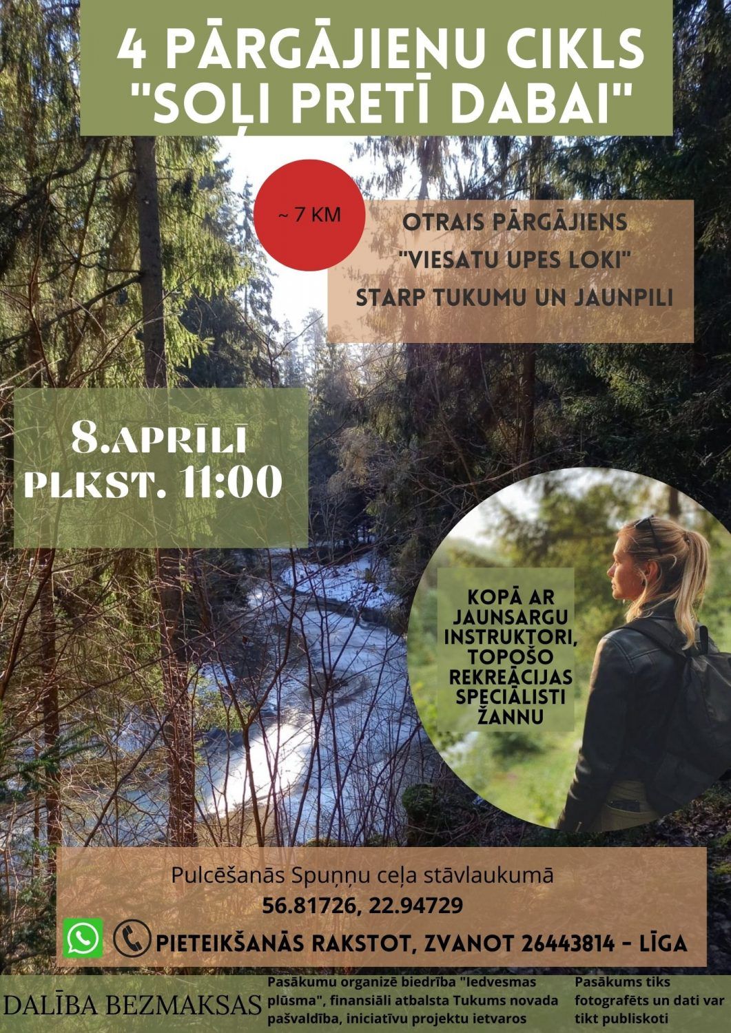 Klāt otrais pārgājiens četru pārgājienu ciklā «Soļi pretī dabai»! Šoreiz plānots doties mierīgā pārgājienā gar Viesatas upes krastiem aptuveni 7kilometru garumā. Tiekšanās 8. aprīlī 11.00 pastaigu takas "Viesatu upes loki" stāvlaukumā (koordinātas 56.81726 22.94729). Pārgājiens paredzēts iesācējiem, taču laipni gaidīti arī pieredzējuši pārgājienu entuziasti.