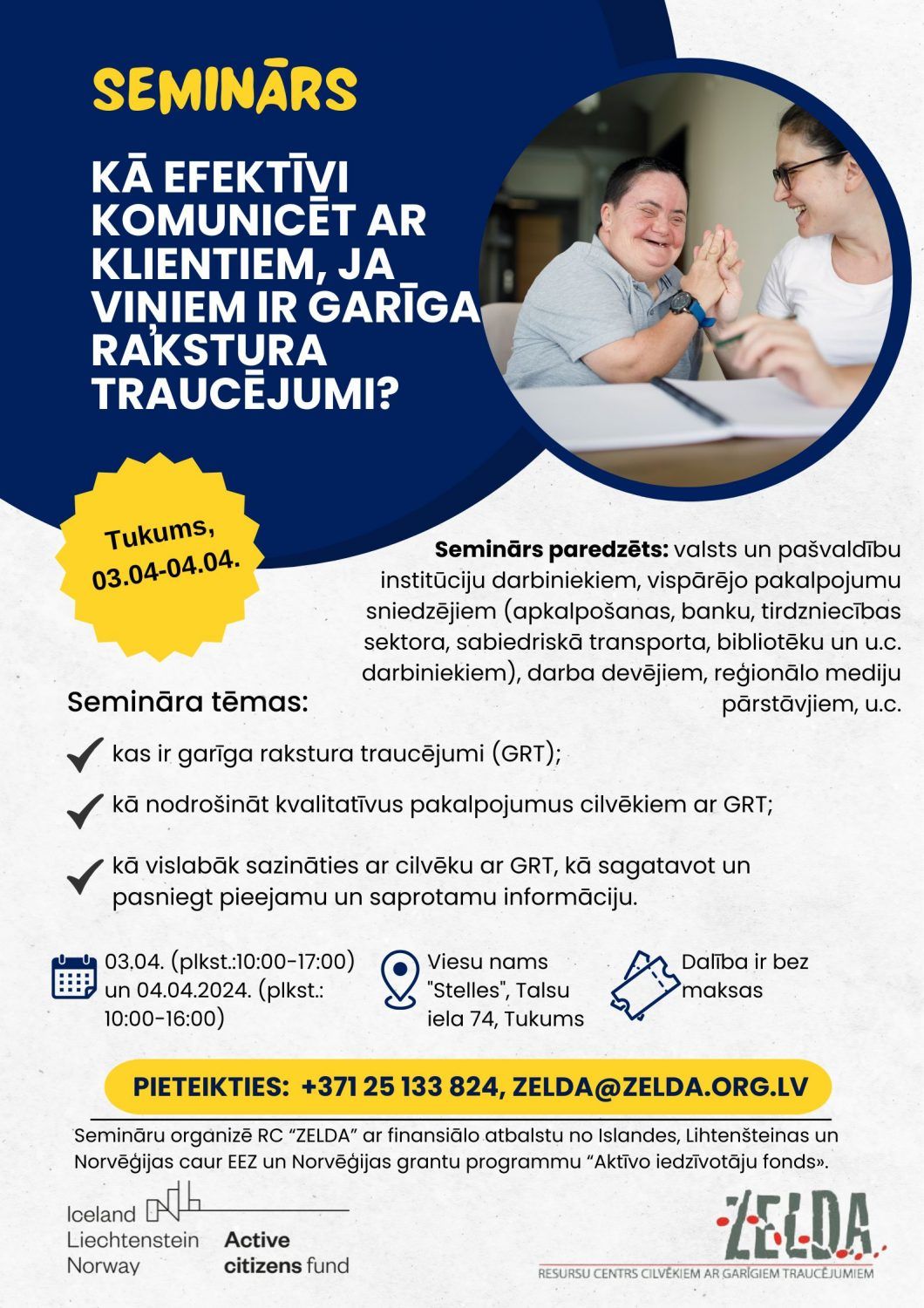 · Vēlies, lai Tu un Tavas organizācijas darbinieki būtu pārliecināti par savu darbu un strādātu atbilstoši mūsdienu izpratnei un zināšanām par dažādiem traucējumu veidiem;
