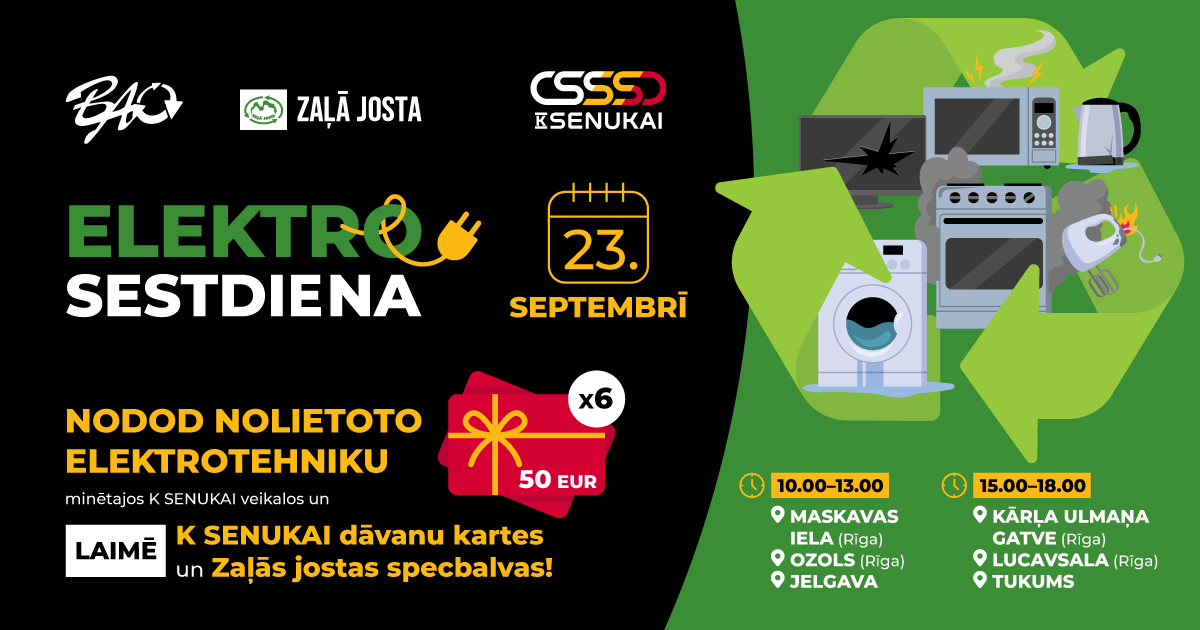 Nododot sev nevajadzīgo elektrotehniku, iedzīvotāji varēs piedalīties loterijā un iegūt kādu no sešām “K Senukai” dāvanu kartēm 50 eiro vērtībā vai kādu no sešām “Zaļās jostas” speciālajām balvām.