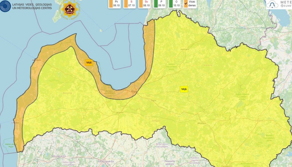 No Baltijas jūras pietuvojoties siltajai atmosfēras frontei un pazeminoties atmosfēras spiedienam, šovakar pakāpeniski no rietumiem debesis aizklās mākoņi, kas nesīs arī intensīvus nokrišņus – līs ilgstoši, vietām pat stipri, lielākajā daļā valsts teritorijas lietus mitēsies tikai otrdien. Attīstoties gubu-lietus mākoņiem, sestdien un svētdien lokāli iespējams pērkona negaiss. Stiprais ziemeļrietumu vējš uz Latviju atnesīs arī ievērojami vēsāku gaisa masu, tādēļ svētdien vietām Latvijā sagaidāms arī pirmais sniegs, arī sniega un ledus graudi, tomēr noturīga sniega sega neveidosies.