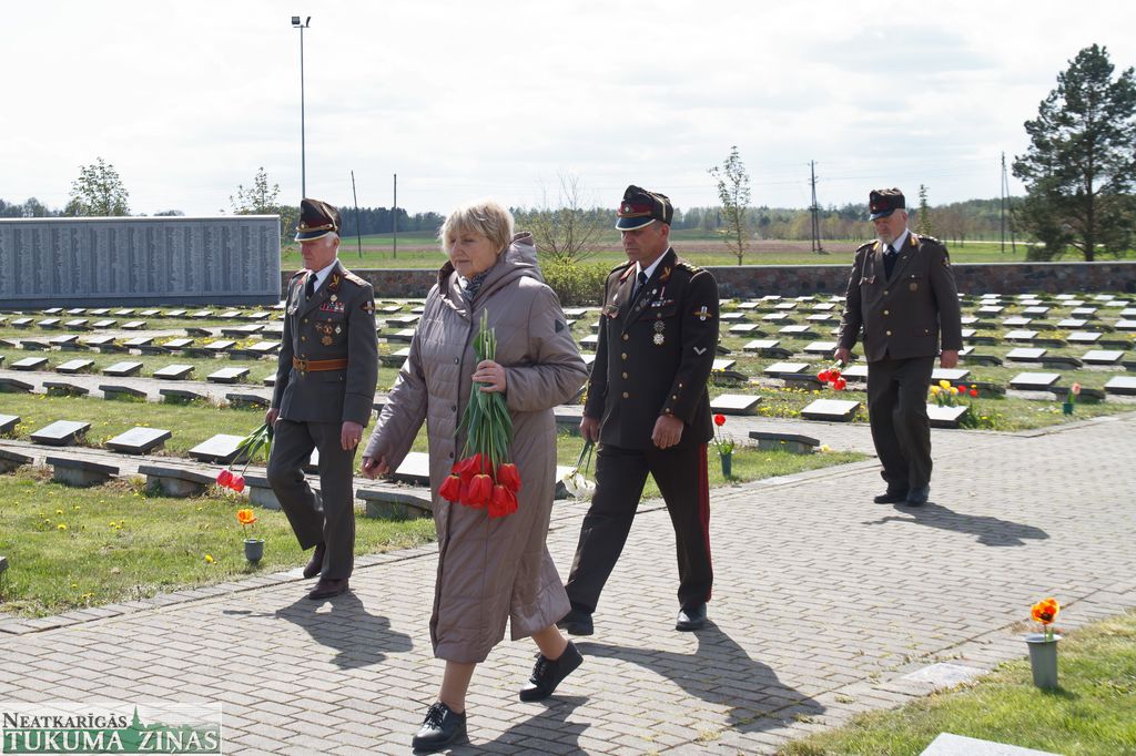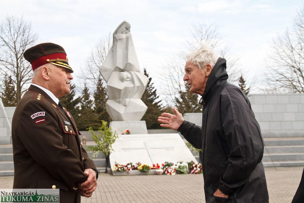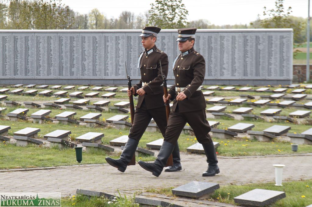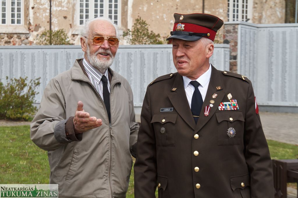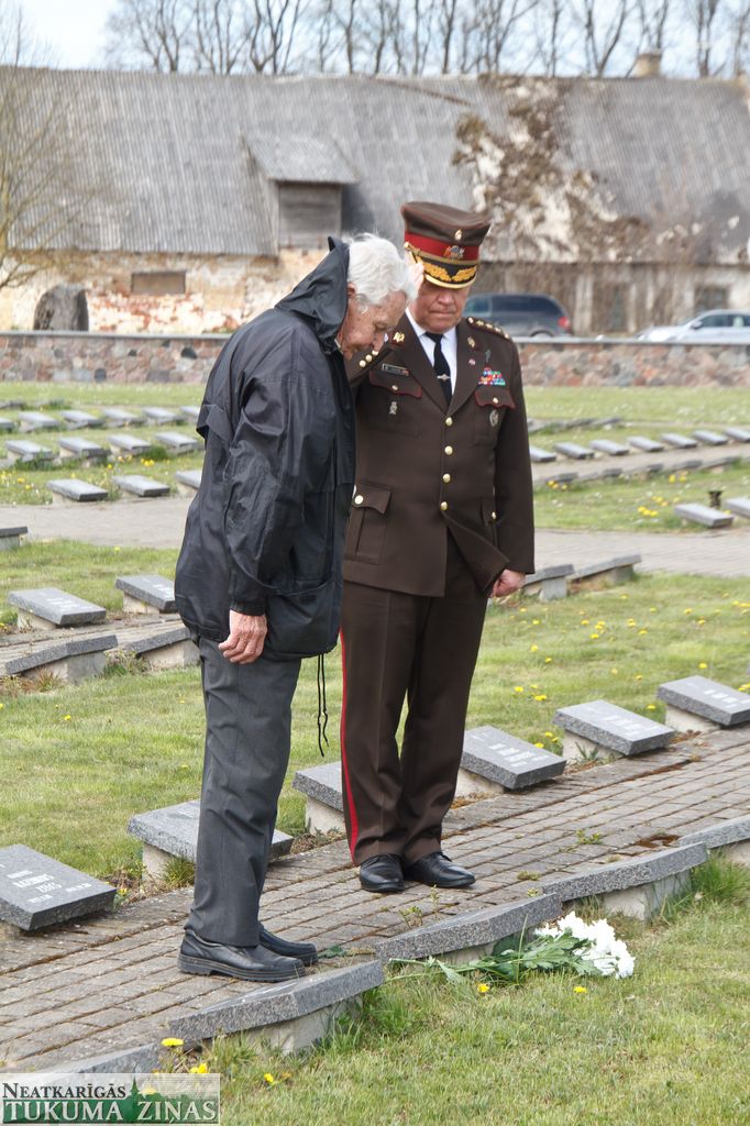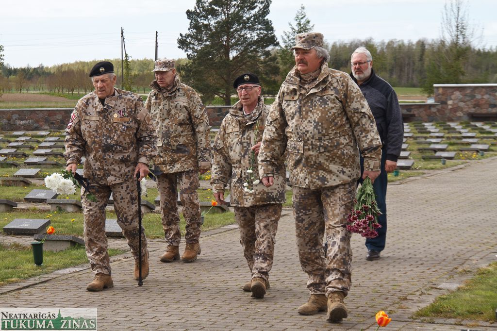Bet, kā atzina Lestenē sastaptie leģionāri Oskars Grīnfelds un Laimonis Ezergailis, viņiem ir pienākums un vienlaikus liels gods būt šajā vietā un pieminēt savus cīņu biedrus, jo kara laikā piedzīvotais ir viņus pavadījis visu mūžu: “Mēs bijām jauni, pavisam zaļi puikas, nepieredzējuši, kad vajadzēja iet karot. Daudzi mūsu biedri palika kara laukā, vienai daļai vārdi ir te, Brāļu kapu sienā, ierakstīti. Mums ir laimējies, ka vēl 75 gadus pēc kara varam te būt un izstāstīt savus stāstus par kara gadiem, kas mūsu prātos ir gluži kā vakar notikuši.” Kopā ar leģionāriem vainagus piemiņas vietā nolika aizsardzības ministrs Artis Pabriks, atvaļinātie Nacionālo Bruņoto spēku virsnieki, zemessardzes veterāni, Aizsargu organizācijas pārstāvji.