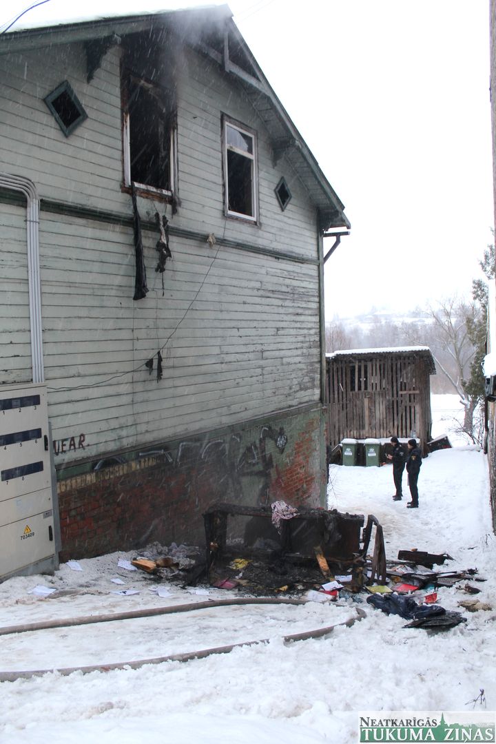 Vakar, 14. janvārī, 08.26, VUGD saņēma informāciju, ka Tukumā dzīvojamajai mājai deg bēniņi. Ierodoties notikuma vietā Tukuma ugunsdzēsēji glābēji konstatēja, ka no ēkas otrā stāva nāk liesmas. Nekavējoties tika uzsākta degošās mājas pārmeklēšana un dzēšanas darbi. Blakus ēkas dzīvoklī atradās divi cilvēki, kas vēl pirms ugunsdzēsēju glābēju ierašanās bija evakuējušies no degošā dzīvokļa. Viņi tika nodoti mediķiem. Kopējā degšanas platība bija 30m². Dzēšanas darbi noslēdzās 10.54.