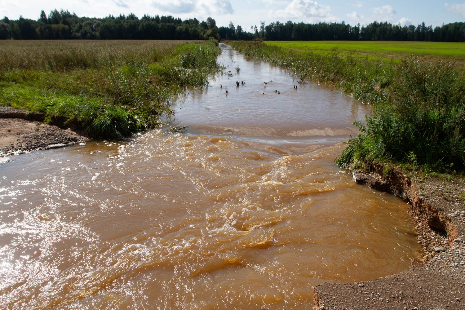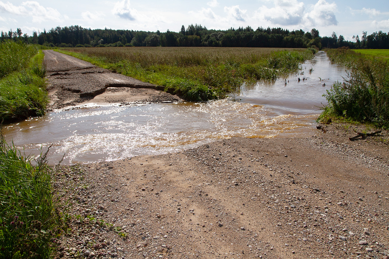 Jāpiebilst, ka, jau braucot uz Praviņām, vairākas vietās pamanījām lietus sekas – nelielus dīķus lauku malās, vietām blakus meliorācijas akām. Redzams, ka grāvji, kas citkārt aizauguši nezālēm, tagad ir ūdens pilni, un zemākās vietās dažviet izskalojuši ceļus, bet ne tik lielā apjomā, kā Vašleja. Tiesa gan, kā stāstīja Guntis Jansons un Aldis Neimands, kas notikuma vietā uzlika brīdinājuma zīmes, lai kāds nejauši neiebrauktu upē, pavasarī situācija bijusi līdzīga, un arī toreiz ceļš ticis slēgts.