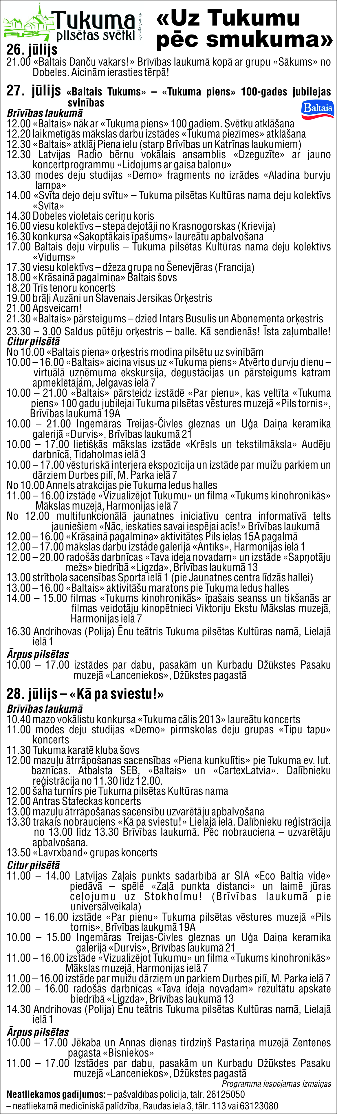 Šī nedēļas nogale Tukumā tiks aizvadīta „baltā” zīmē, kas priecēs ikvienu apmeklētāju ar bagātīgu pasākumu klāstu, jo jau tradicionāli Tukumā notiek pilsētas svētki «Uz Tukumu pēc smukuma!».