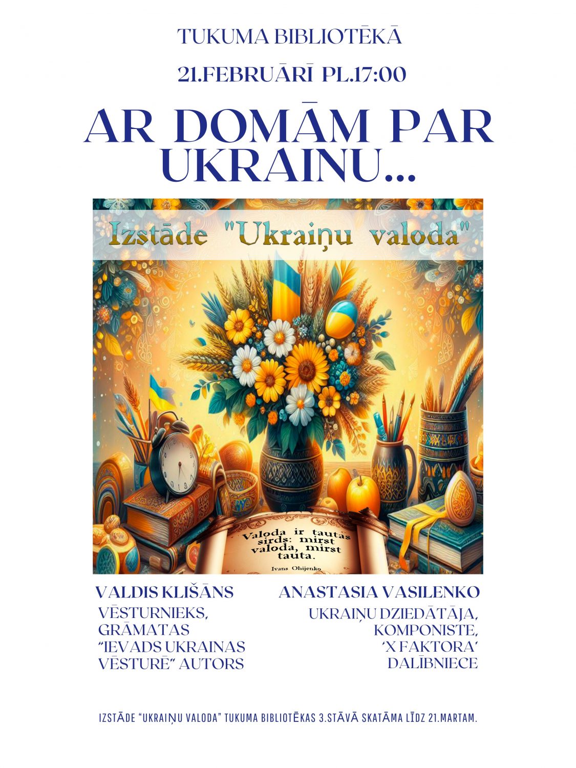 Pasākums sāksies ar izstādes U K R A I N S K A M O V A (Ukraiņu valoda) atklāšanu. Būs iespēja uzzināt ukraiņu valodas attīstības un veidošanās stāstu cauri gadsimtiem, kā arī to, cik lielu un vienojošu nozīmi valoda ir ieguvusi kopš kara sākuma. Izstāde Tukuma bibliotēkā būs skatāma līdz š.g. 21. martam. Tā tapusi pēc Ukraiņu atbalsta centra Tukumā iniciatīvas SIF projekta ietvaros.