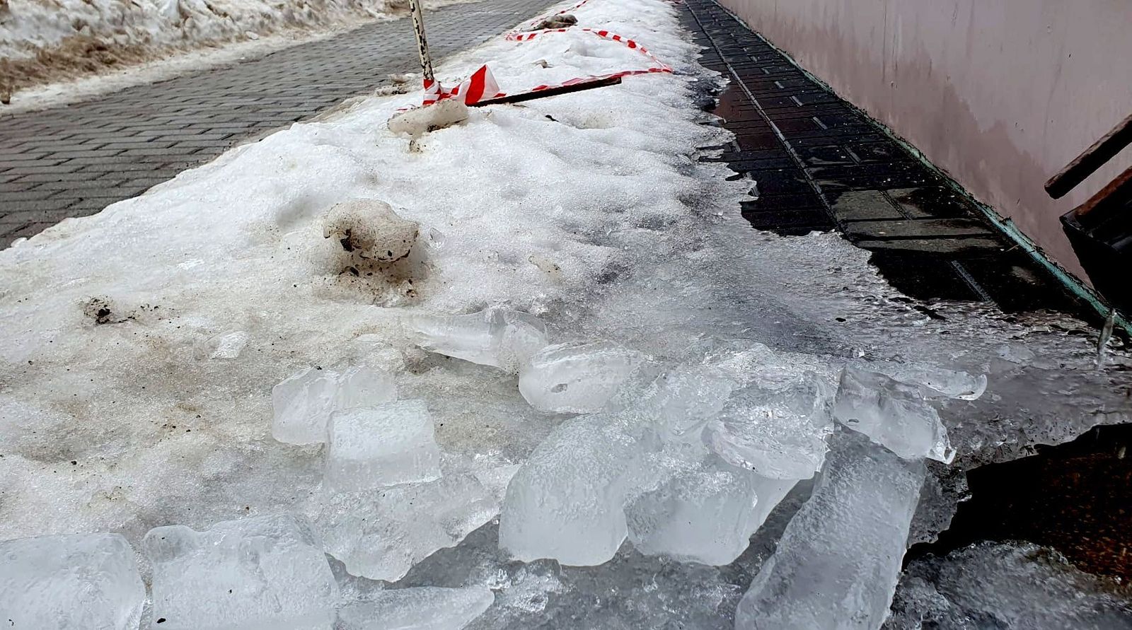 Šobrīd, kad gaisa temperatūra stabili turas virs nulles, lielie sniegi sākuši strauji kust, tostarp uz māju jumtiem. Tādēļ uzmanīties īpaši aicināti kājāmgājēji, jo vietām uz ietvēm atklājas slapjš ledus, bet notekās – ledus gabali, kas kādā brīdī var krist lejā. Kā novērojām, Tukuma pilsētā vietām gar ēku sienām gan ir izveidoti norobežojumi, brīdinot par šādu iespējamību – krītošiem ledus un sniega gabaliem, tomēr tā tas nebūt nav visur, tādēļ arī pašiem ieteicams uzmanīties!