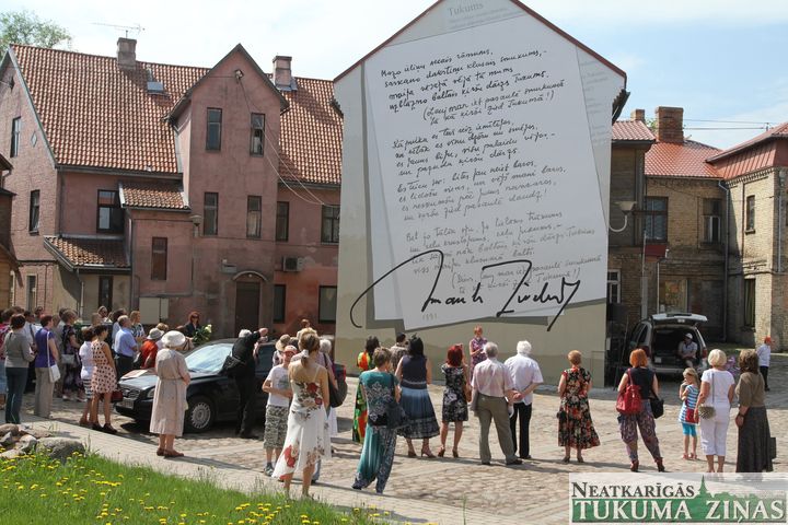 Šodien, 18. maijā Katrīnas laukumā tika atklāts dzejniekam Imantam Ziedonim veltīts vides objekts «Imanta Ziedoņa dzejolis «Tukums»».