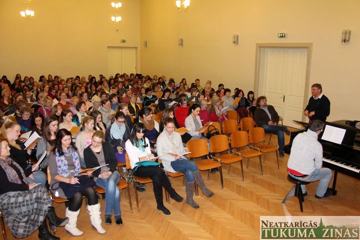 Ceturtdien, 30. janvārī, Raiņa ģimnāzijas zālē uz pirmo kopmēģinājumu sava virsdiriģenta Romāna Vanaga vadībā bija pulcējis Tukuma dziesmotā apriņķa kopkoris, lai uzsāktu aktīvu gatavošanos Pasaules koru olimpiādei, kas jūlijā notiks Rīgā.
