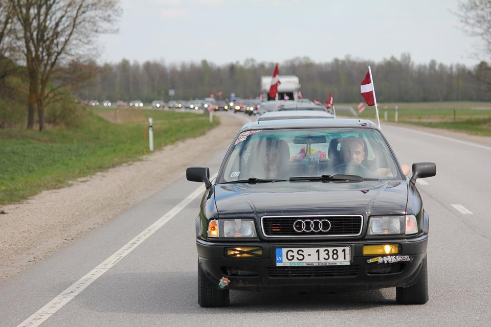Liels paldies visiem dalībniekiem, kas piedalījās 14. maija karogu braucienā Tukumā un Kandavā. Godīgi sakot pārsteidzāt mani ar atsaucību. Ieradās 65 mašīnas un 4 motocikli, kas ,manuprāt, priekš pirmās reizes ir diez gan daudz. Nevaru sagaidīt nākamo gadu, kad varēsim kopā doties atkal šjā piedzīvojumā, protams, kuplākā skaitā un ar uzlabotām niansēm.
