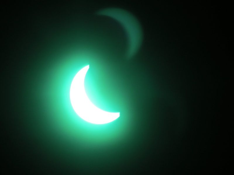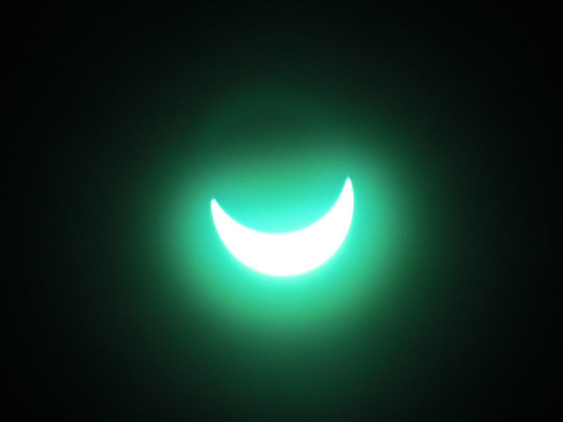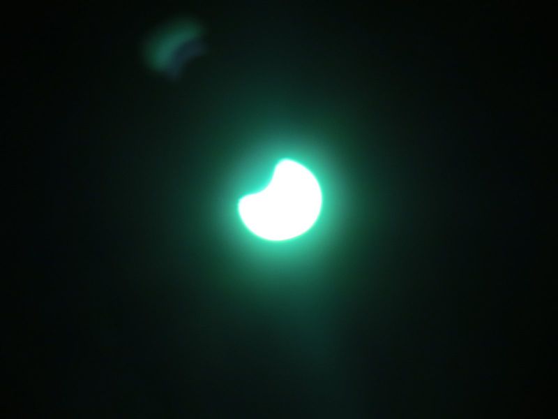 Somu masu medijos izlasīju,ka uz sauli drīkst skatīties caur metinātāju aizsargstiklu DIN 14.Turpat bija piebilde ka tāda Nr. veikalos arī nav. Sakarā ar lielo pieprasījumu visi stikli esot izpirkti.Haminas saimniecības (tehnikas) veikalā, par laimi bija DIN 10. Nopirku divus.Saliekot kopā varēja droši skatīties un fotogrāfēt. Tāpēc tāda zaļa krāsa.