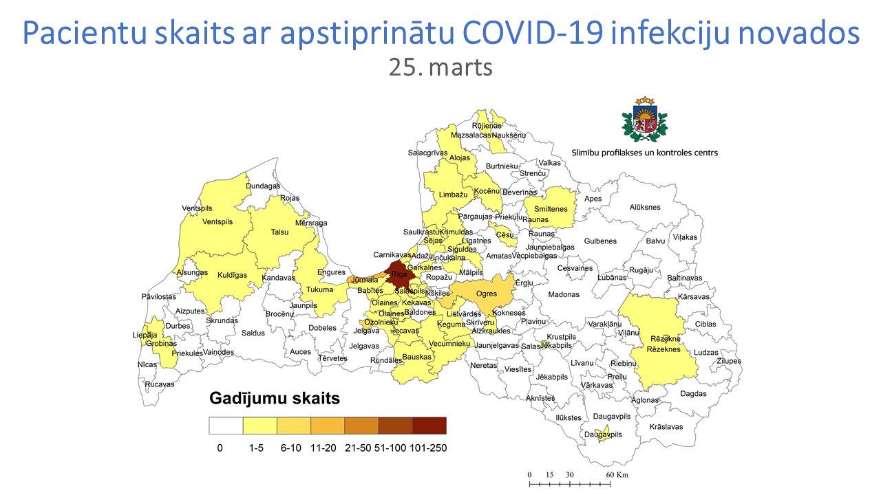 Arī Tukuma novadā saslimušie ar COVID-19 /Papildināts ar 25. marta karti/