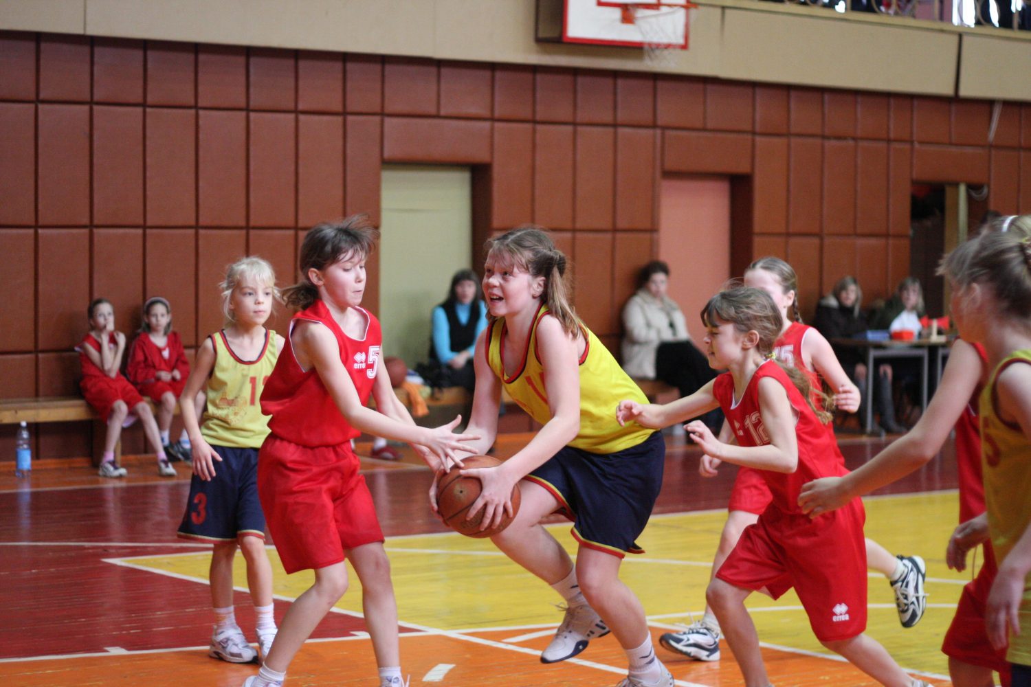 Basketbolā sacenšas meitenes