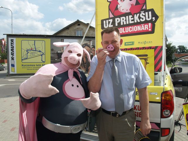 Ne nu gluži kviecieniem, bet ar cūciski drošu runu 11. augustā pie lielveikala «Rimi» Tukumā uzstājās Cūkmens – tautudēls, kas cūciskas dzīves pēc par cūku pārvērties. Tagad viņš aktīvi cīnās pret mežu piemēslošanu un savu draugu lokā pulcējis ne vien a/s «Latvijas valsts meži», bet arī lielveikalu «Rimi».
