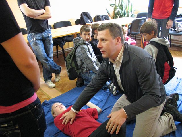 Jāteic, uz aktīvu darbošanos nevienam pamudinājumu nevajadzēja – bērni aktīvi un veikli iemēģināja, kā nostiprināma salauzta roka, aizpildīja testu ar jautājumiem par rīcību dažādu traumu gadījumos un piedalījās pirmās palīdzības sniegšanā. Te palīdzēja Smārdes pamatskolas statisti un Neatliekamās medicīniskās palīdzības dienesta galvenais speciālists Haralds Lučkovskis. Viņš stāstīja, ka pirmā palīdzība būtu jāapgūst katram, vismaz elementārā līmenī, jo, kā, liecinot statistikas dati, 42% traumu cilvēki gūst mājās, 21% – uz autoceļiem, bet 1,5% – izglītības iestādēs, kur skolēni parasti gūst sasitumus, lūzumus un izmežģījumus. Smārdes pamatskolas meitenes gan atzina, ka īsti nezinot, kā rīkotos, ja pašām nelaimes gadījumā būtu jāsniedz palīdzība. Skolotāja teikusi, ka tādos gadījumos cilvēks rīkojoties daudz savādāk nekā mācoties.