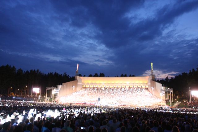 Šoreiz varētu teikt – 11. tramvajs jau leģendārs – pārpilns ļaužu viens pēc otra tie veda klausītājus un skatītājus uz Mežaparka lielo estrādi. Rindas garas vēl brīdī, kad koncerts jau sācies. Mazliet dīvaini raudzīties koncertā no malas – iepriekš piedaloties. Būt dalībniekam – tomēr ir saviļņojošāk, esi dziesmu virpulī, tava dvēsele gavilē un ceļas dziesmai līdzi. Skatoties un klausoties no malas – izjūtas citādākas, centies tās notvert – vai nu tas izdodas vai ne. Vai izdevās?! Jā, bet tikai pēdējo trīs, četru skaņdarbu laikā, sākot ar komponista Mārtiņa Brauna «Saule, pērkons, Daugava» un beidzot ar Jāzepa Mediņa un Ausekļa «Gaismas pili» Imanta Kokara vadībā un, visbeidzot, ar Imanta Kalniņa «Pūt, vējiņi».