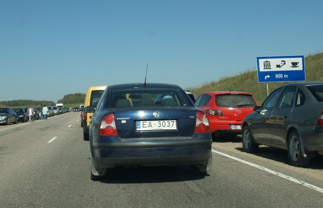 Gar malu abās pusēs novietotas automašīnas, brauktuve pilna ar antiņiem, kuri iedomājušies nolikt auto kur tuvāk Jaunmoku pils iebraucamajam ceļam vai pat tikt tur iekšā, lai gan skaidri redzams, ka viss jau pilns.