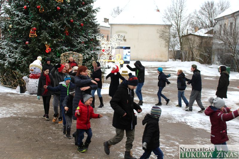 Pavadījuši rūķus-ciemiņus, mēs – redakcijas rūķi – devāmies sagaidīt savus Dzirciema draugus. Vispirms slidojām ledushallē, tad ēdām picas un saldējumu, visbeidzot ar dažām rotaļām ”iesildījām” laukumu pie lielās Tukuma egles. Un, pateicoties mazāko bērnu un aktīvāko meiteņu mākai dziedāt, visi tikām pie gardumiem, ko Sniegavīrs bija paslēpis zem lielās svētku eglītes…