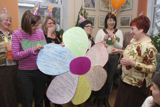 Nav šaubu, ka aizvadītie gadi bijuši gana darbīgi un veiksmīgi. Bez kārtīga koncerta vai citkārt – teātra spēlēšanas, nav izticis neviens pasākums, savukārt ar gleznošanas, rokdarbu un kokapstrādes nodarbībās sastrādāto bijusi iespēja allaž lepoties. Kā caur smiekliem un asarām stāstīja apmeklētāji, katrs te guvis kaut ko sev – draugus, nodarbošanos, veselību. Tāpēc viņu lielais paldies darbiniekiem, vadītājai Ingrīdai Rudzītei un pašiem sev – par to, ka mēs visi te esam. Taču tas ceļš, kas vedis apmeklētājus uz «Saimi», katram ir citādāks: Raimonds smagu traumu guvis pirms 15 gadiem, ilgus gadus bijis uz gultas, taču ar centra darbinieku atbalstu tagad sācis staigāt, savukārt Ervīns centrā iestājies 2002. gadā – viņu to darīt aicinājuši sociālie darbinieki, kas viņu apciemojuši mājās; Agris te radis iespēju veidot filigrānus koka darbus, ļoti smalkus un precīzus, bet Kaspars centrā mācās dzīvot. Katra liktenis apliecina, ka neviens no invaliditātes nav pasargāts, tāpēc ir tik labi, ka kādā vietā tevi gaida, aprūpē un palīdz veseļoties un ka vari justies kā aizvējā.