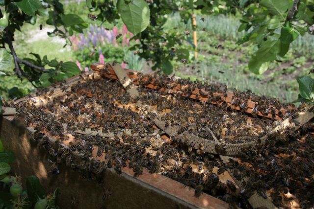 Gaiss virs «Blāzmu» dārza bišu stropiem skan no sīkas zumēšanas – te viens spiets, otrs, trešais. Vesels bišu mākonis. Guntis uz Mirdza Baumaņi aizbraukuši lūkot bites pārējās novietnēs, jo vienā vietā daudz saimju nevar turēt. Turklāt arī saldme zālājā jau nav bezizmēra. Slampē jau ziedi, koki ir tik, cik ir.