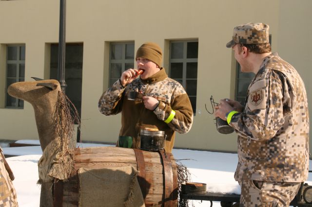 Gida pavadībā viņi tika iepazīstināti ar 2004. gadā uzņemtās filmas «Rīgas sargi» vajadzībām uzceltajām celtnēm un tajā izmantoto tehniku. Par karavīru nodrošināšanu ar pusdienām parūpējās bataljona lauku virtuve.