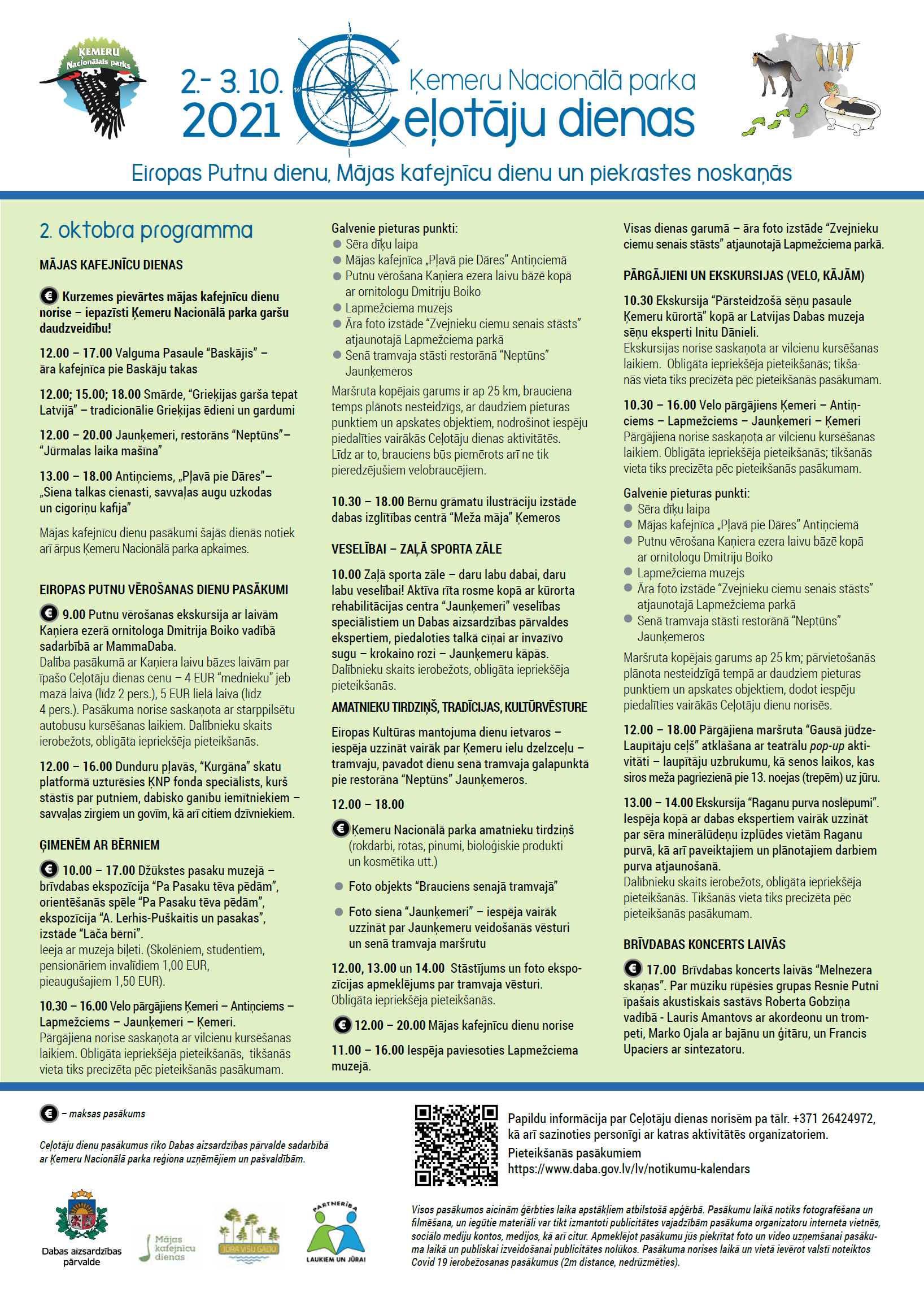 Ķemeru nacionālā parka Ceļotāju dienas programma – 2.oktobris