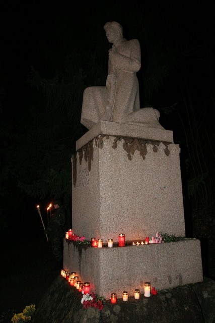 Pie pieminekļa Meža kapos (tautā saukta par Puisīti) viņus sagaidīja zemessargi un jaunsargi ar valsts karogiem rokās. Kapu kalna piekalnē – pāri visiem atmirdzēja sveču liesmu auseklītis.