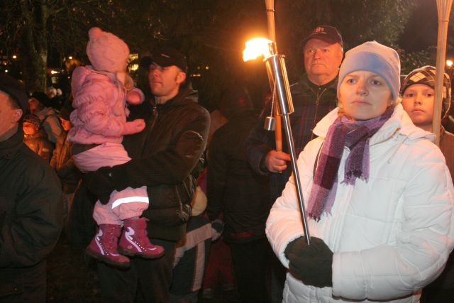 Pieminot šos tālos notikumus, vakar tukumnieki lāpu gājienā devās uz Meža kapiem, kur Puisīša (tēlnieka K. Zemdegas pieminekļa latviešu, kuri krituši cīņās par brīvu Latviju) pakājē dus par Tēvzemi kritušie varoņi.