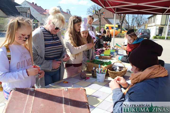 Savukārt Lieldienās Tukumā, Brīvības laukumā, ikvienam bija iespējams darboties radoši un pārtapt, piemēram, garausī zaķī, ko piedāvāja «Dabas mājas» aktīvisti, savukārt keramiķe Madara Atiķe aicināja izjust mālu, veidojot no tā dažādas figūras, savukārt biedrības «Ligzda» jaunieši piedāvāja apgūt visdažādākos roku darbus. Lai arī ik pēc mirkļa uzpūta vējš, kā novērojām, radošu darbošanos daudzi mazie un lielie uzskatīja par labāku nodarbi, nekā mājās sēdēšanu.