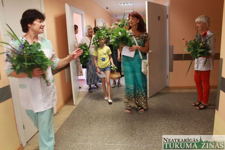 22. jūnijā Tukuma slimnīcas neiroloģijas un traumatoloģijas nodaļās gaidāmo Līgo svētku sveicienu atnesa sieviešu tiesību biedrības «Tumes mežroze» kolektīvs.