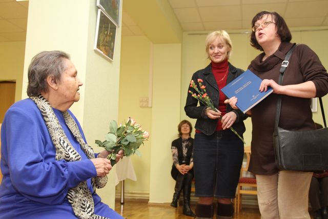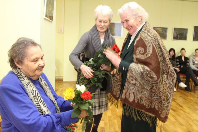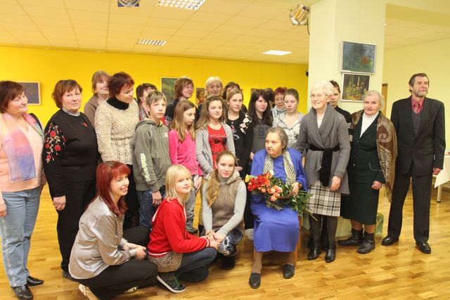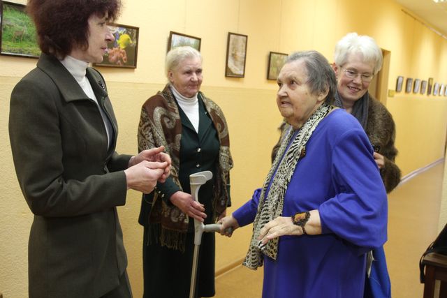 Šobrīd Tairīte mazmazliet veselību Irlavas slimnīcā uzlabo. Nu jau labu laiku. Viņai te patīk, un slimnīcas ļaudīm viņa kļuvusi savējā. Izstādi rosināja un kūrēja slimnīcas galvenā ārste Valentija Enbure. Ne mazums klapatu bijis, lai bildes tiktu tautas namā pie sienām. Nu tās tur ir. Trīsdesmit piecas. Tāds nieks vien no Tairītes veikuma. Vaicājam, vai maz pati zina vietu, malu, kur viņas darbi tautās izsvaidīti un pati arī izrādījusies? Tairīte pieklusa, domāja. Teicās padomāt. Māksliniecei mugurā koši zils mētelis. Zem tā – debeszila kleita. Protams, košāka pār plašo virs mākoņiem. Lai ļaudis redz! Acīs mākslieniecei mirdz lepnība. Ir arī par ko. Plecos tikai astoņdesmit astoņi gadi. Divi kliņģeri – četras nulles. Trīsdesmit trīs arī sanāk, ja ciparu uz pusēm pāršķēlē un otru pusi malā noliek.