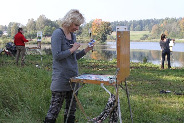 Četri jauni ļaudis pagājušo sestdien, 25. septembrī, Šlokenbekas dzirnavu apkaimē pirmo reizi ar otu rokās pie molberta stājās un gleznoja.
