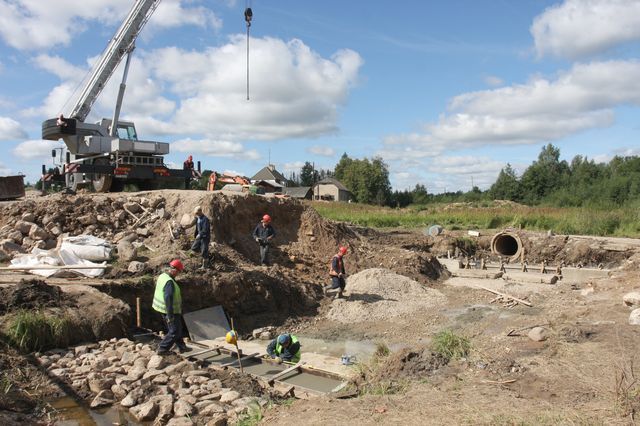 Otrdien SIA «Tilts» būvnieki iebetonēja tilta pēdas, uz kurām guldīs trīs metru diametrā elipsveida betona caurteku, un Bebrupīte atkal varēs tecēt pa sev tik ierasto gultni. Celtniecības laikā upīte plūst pa izveidotu apkārtceļu, lai straume netraucē darbiniekiem. Jaunais tilts, patiesībā – upes pārbrauktuve, būs 18 m plata un četrus līdz piecus metrus gara. Mēs – ceļa braucēji – būvniekiem noskaitām vien nieka 27 000 latu. Un, cik vēl neatmetam no pievienotā vērtības nodokļa par degvielu Satiksmes ministrijas aparāta uzturēšanai?!