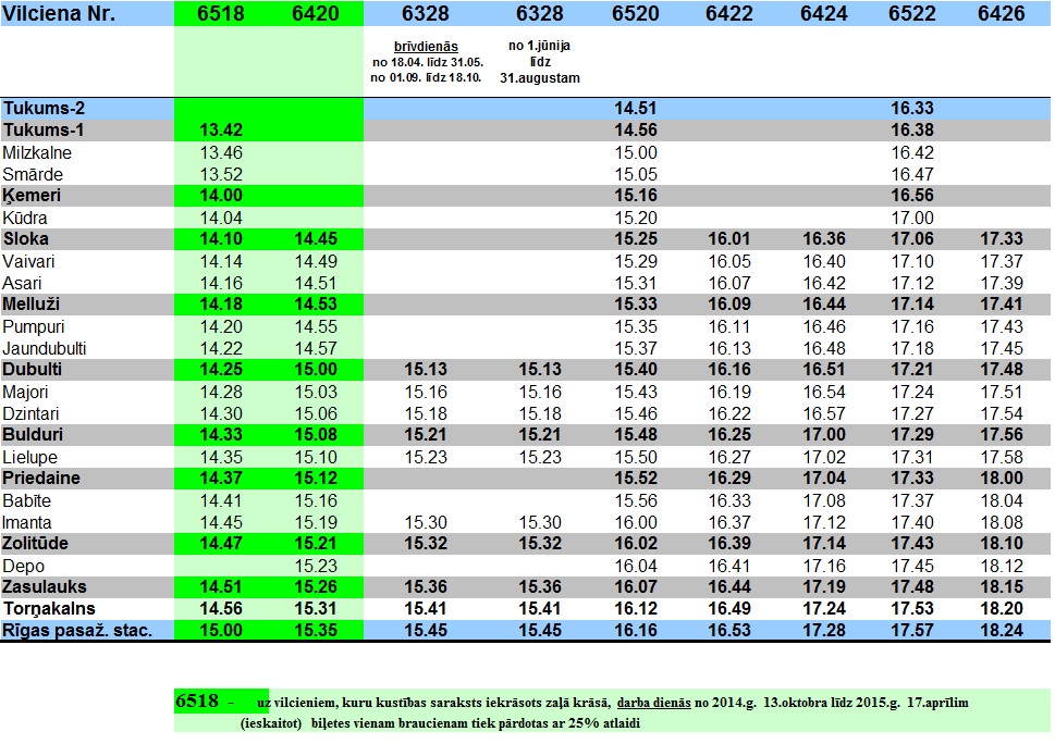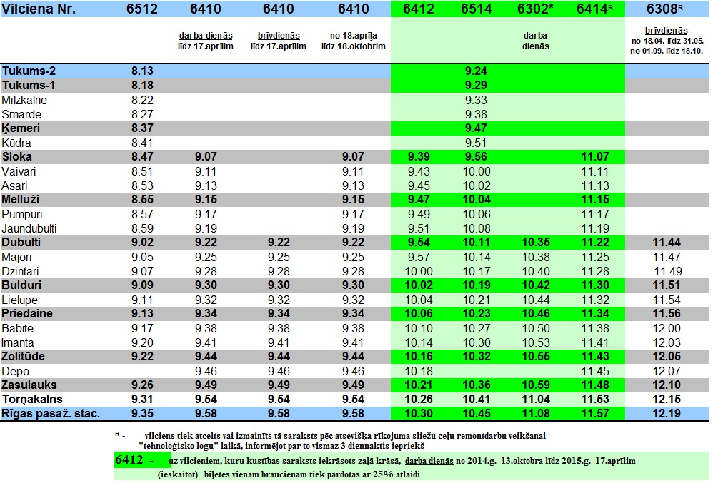 Visu maršrutu vilcienu sarakstus skatiet ŠEIT!
