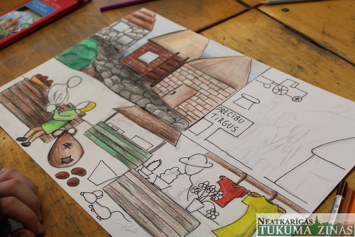 Pavisam tajā piedalījās 177 dalībnieki no 1. līdz 12. klasei, kas šajā dienā bija aizņēmuši visus šīs skolas mācību kabinetus un strādāja trīs stundas, lai radītu savu stāstu par olimpiādes tēmām. Uzdevumu – teiku, kas bija jāuzzīmē 1.-4. klašu skolēniem, jau minējām, bet 5.-12. klašu skolēniem komiksā bija jāattēlo Tukuma vēstures fakti par Livonijas ordeņa pili, Tukuma miesta tapšanu 15. gadsimtā, senajiem gadatirgiem, Precību spēlēm un, protams, Tukuma smukumu šodien. Kā atzina Vizuālās mākslas skolotāju metodiskās apvienības vadītāja Sņežana Tišlere, uzdevums grūts, jo prasa iedziļināšanos un iztēli, taču bērniem parasti izdomas pietiek, lai pat visgrūtākos uzdevumos atrastu savu risinājumu un lai kopā ar prasīto parādītu arī savu attieksmi.