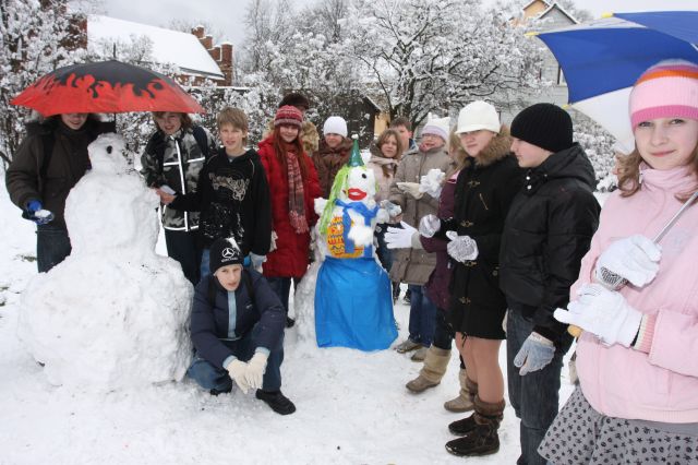 18. martā Tukuma E. Birznieka-Upīša 1. pamatskolas 5.a klases skolēni, audzinātājas Indras Būmanes rosināti, skvēriņā pie Lielās ielas uzcēla pavasara sniegavīru. Bieži jau pavasaris tā nesākas.