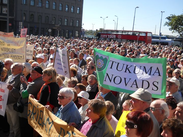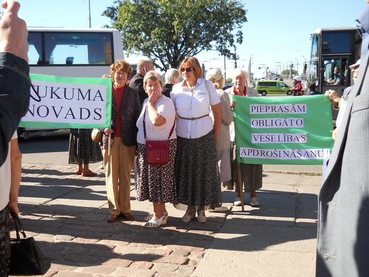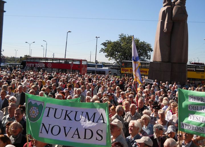No Tukuma novada un Lapmežciema uz Rīgu pensionārus veda lielais autobuss. Bija sagatavoti plakāti, prasot obligāto veselības apdrošināšanu, cieņu pret vecākiem un vecvecākiem un paužot aktīvu iestāšanos pret nabadzību. Pa ceļam tika apspriests viss – gan politika un politiķi, gan labākās kabaču receptes un vasarā izbrauktās ekskursijas. Pie Strēlniekiem tukumnieki ieradās vieni no pirmajiem, tādēļ paguva ieņemt labākās vietas pie Okupācijas muzeja kāpnītēm, kur mikrofoni gaidīja oratorus un pūtēji izklaidēja ar jaukām meldijām.