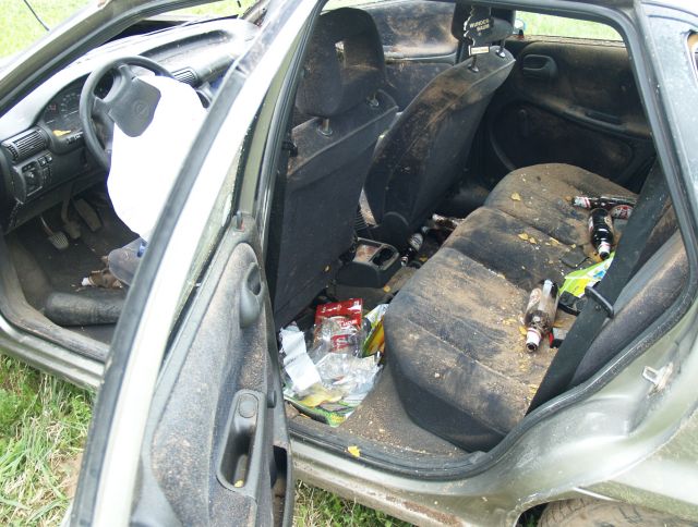 Zemu lidoja, alus pudele ieripoja starp pedāļiem, līdz ar to zuda jauda, ar atvērto kreiso durvi skāra zemi un apmeta kūleni.... :)