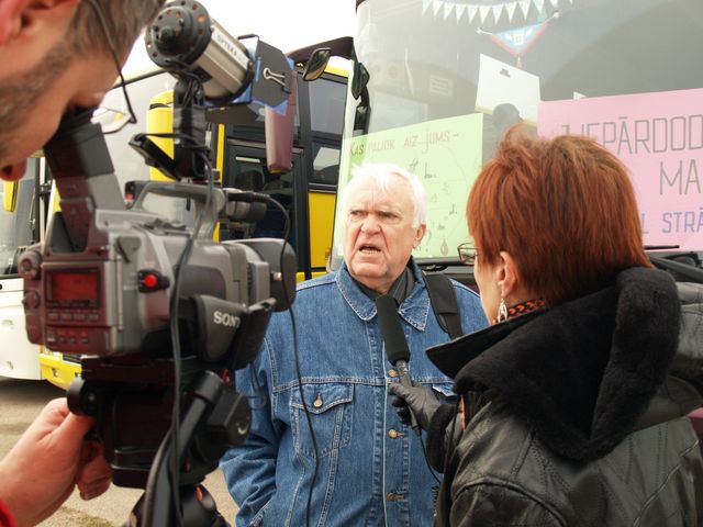 Ar melnām lentām un plakātiem, kuros rakstīti izteiksmīgi saukļi «Stop ierēdņu patvaļai!», «Mēs vairs neesam derīgi», «Godmani, nekasi aiz auss, paskaties, kas notiek Autotransporta direkcijā!», aprīkoti autobusi šodien bija sabraukuši laukumā aiz Smārdes pagastmājas, lai iesaistītos protesta akcijā «Nepadodies, lauku pasažieru pārvadātāj!». Pavisam no dažādām Latvijas vietām bija atbraukuši 22 autobusi, kas šajā dienā nebija aizņemti reisā.