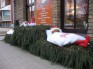 Piemēram, pagājušās nedēļas nogalē dekors ar Ziemassvētku gaidās aizmigušiem rūķiem izlikts pie jaunatvērtā ziedu salona «Kamēlija» Pasta ielā. Rūķus un pārējos dekorus darinājušas Laura, Vita un Līga. Viņas arī izlēmušas, ka vajadzētu izrotāt veikalu, lai klientiem, garāmgājējiem un arī pašām lielāks prieks. Jau novērojušas, ka garāmgājēji rūķus labprāt aplūko un pie tiem pat fotografējas. Tiesa, vienu nakti dekorējums jau nedaudz papostīts, taču kopīgiem spēkiem viss atkal salikts vietā.