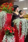 Līgas Granovskas ziedu veidojumiem uz koši sarkaniem posteņiem nav nosaukuma. Pati stāvēs priekšā vai aiz tiem. Lai ļaudis skatās un brīnās.