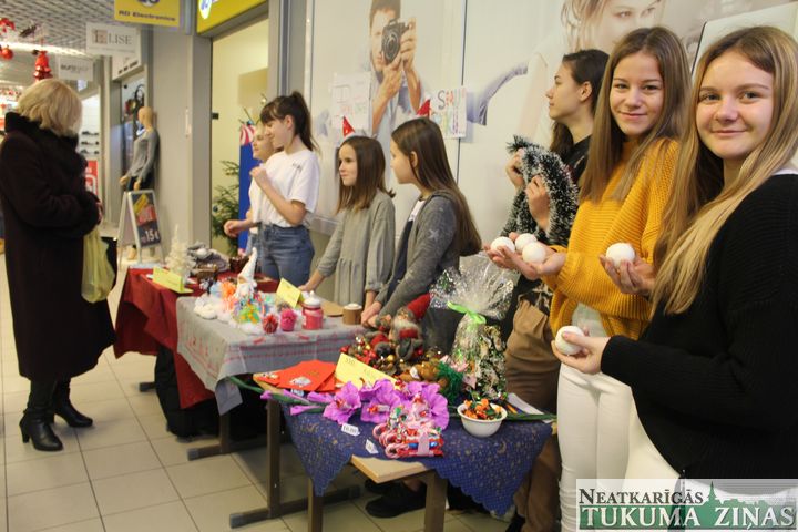 Koka ķeblīši un virtuves dēlīši, Ziemassvētku kompozīcijas un dekori, adījumi, tamborējumi un pērļotas skaistumlietas – tās bija tikai dažas skolēnu pašu gatavotās lietas, kuras vakar, 10. decembrī, tirdzniecības centrā «Tukums» piedāvāja skolēnu veidotie mācību uzņēmumi. Izstrādājumu klāsts bija tik bagātīgs, ka dažs labs pircējs tirdziņu izstaigāja vairākkārt un no veikala izgāja ar daudzām svētku dāvanām, atzīstot, ka šis esot gaidītākais pirmssvētku notikums.