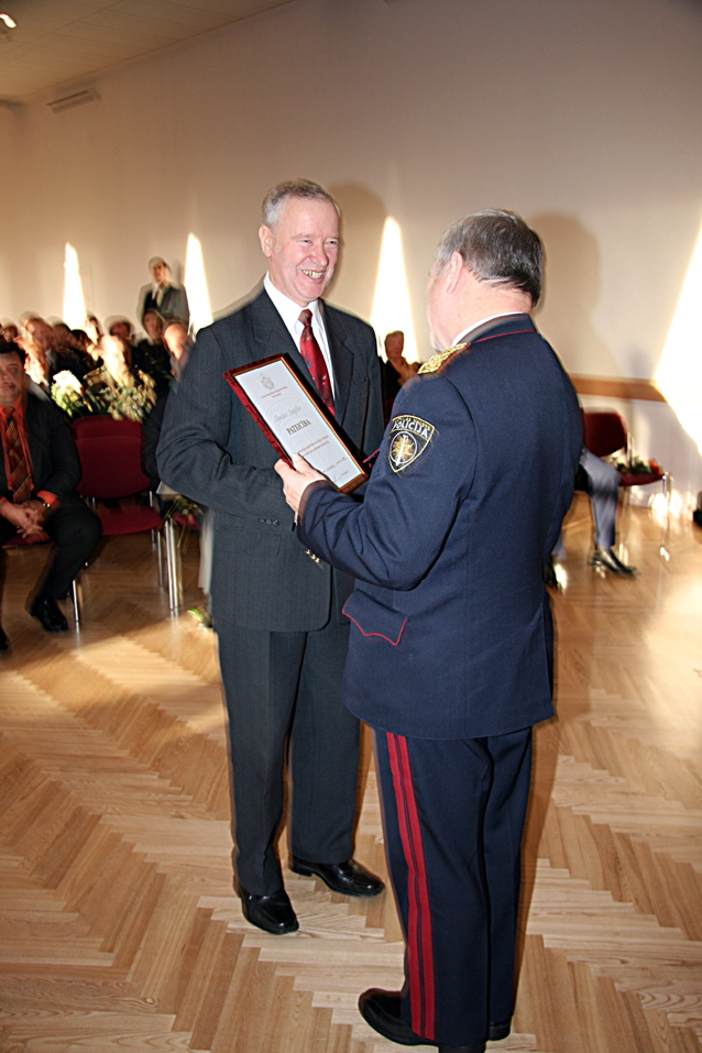 Par augstu profesionalitāti, godprātīgu pienākumu pildīšanu un sakarā ar LR proklomēšanas 90. gadadienu