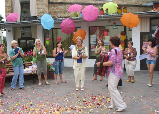 Jāpiebilst, ka gaviļnieces sumināšana pavisam nejauši izvērtās par vienu no interesantiem Rožu svētku mirkļiem, kurā ar interesi nolūkojās nejauši garāmgājēji. Izdzirdējuši dziedāšanu, turklāt pie kultūras nama, viņi kļuva par šī improvizētā pasākuma dalībniekiem.
