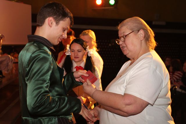 Nemateriālā kultūras mantojuma valsts aģentūras Atzinības rakstus, Tukuma kultūras nama īpašās grāmatas un Pateicības listes par skatuves mākslas mīlestību saņēma Lāsma Poča, Ieva Sakne, Luīze Jansone, Dārta Balode, Kristīne Jansone, Laine Kupča, Kristaps Bergfelds, Arita Vīziņa, Zane Ozoliņa, Anna Ozoliņa, Madara Vinslava, Arta Pastore, Krišjānis Elviks, Paula Vanaga, kā arī režisori Mārtiņš Počs un Rudīte Poča. Visiem pārējiem tika dāvināti īpašie «Knifiņa» krekliņi. Kad dāvanas bija saņemtas, aktieri teica paldies visiem, kuri ikdienā palīdzējuši tapt un notikt izrādēm – šuvējai Inārai…, mūzikas autoriem Jurim Rozenbergam un Anitai Geidānei, skatuves noformētājiem Intaram Kleinhofam un Anitai Liepiņai, skaņu un gaismu meistariem Ārim Indersonam un Mārim … un šoferim Ilgonim Jermakam.
