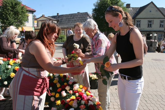 Tukumā top pasaulē lielākais rožu vainags /FOTO/