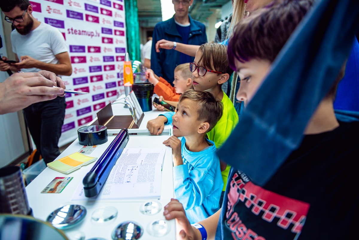 STEaMup zinātniskās laboratorijas apmeklētājiem bija iespēja redzēt un pašiem piedalīties dažādos eksperimentos, piemēram, iepazīt gaismas demonstrējumus un uzzināt, kā dažādos apgaismojumos izskatās priekšmeti. Tāpat bija iespēja pārbaudīt magnēta spēku, aplūkot sevi dažādos spoguļos un uzņemt bezgalīgo selfiju, izšaut ar pašu gatavotu “lielgabalu”, kā arī redzēt skaņas viļņus un frekvences.