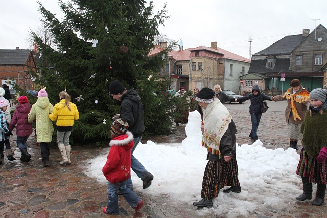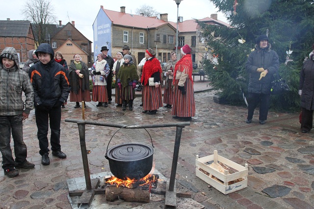 Svētku egli vakar Adventes 2. svētdienā posa Tukuma nevalstiko organizāciju ļaudis. Rotāja, cik vien augstu varēja aizsniegt. Lai spītētu lietum un nelaikam, tukumniekus jautroja folkloras kopa "Pūrlāde" no Pūres.