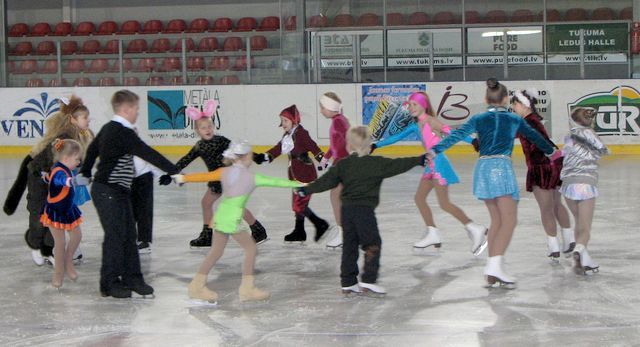 Svētku priekšvakarā Tukuma ledus halles laukumu deju soļiem iezīmēja lieli un mazi slidās tērpti kāju pāri. Tā savus Ziemassvētkus svinēja sporta skolas jaunie daiļslidotāji un viņu vecāki, atbalstītāji.