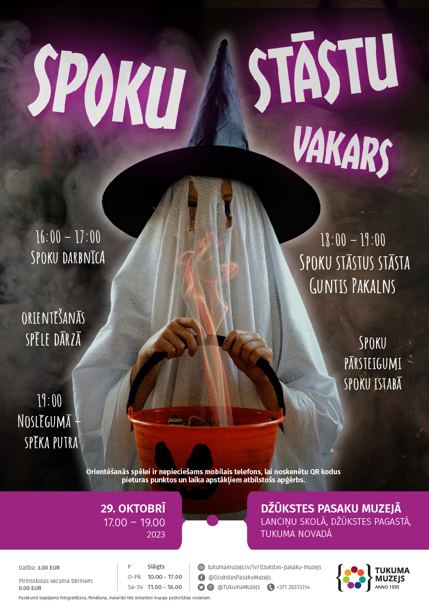 Mazākie muzeja apmeklētāji no plkst. 16.00 līdz plkst. 17.00 aicināti darboties radošajā Spoku darbnīcā. Savukārt no plkst. 18.00 līdz 19.00 būs stāstu stunda – stāstus stāstīs pieredzējušais folklorists un Spoku stāstu ķēniņš Guntis Pakalns. Tāpat pievienoties ar savu stāstu aicināts ikvienam, kam pūrā ir kāds baisāks notikums iz dzīves, vai arī paša izdomāts stāsts. Muzejā būs atvērta arī Spoku istaba, kur būs sastopami virtuālie spociņi. Ikvienam būs iespēja piedalīties orientēšanās spēlē dārzā un, skenējot QR kodu, klausīties teikas un nostāstus, kas saistīti ar Džūkstes pagastu. Noslēgumā, plkst. 19.00, apmeklētāji varēs baudīt spociņu sarūpēto spēka putru.