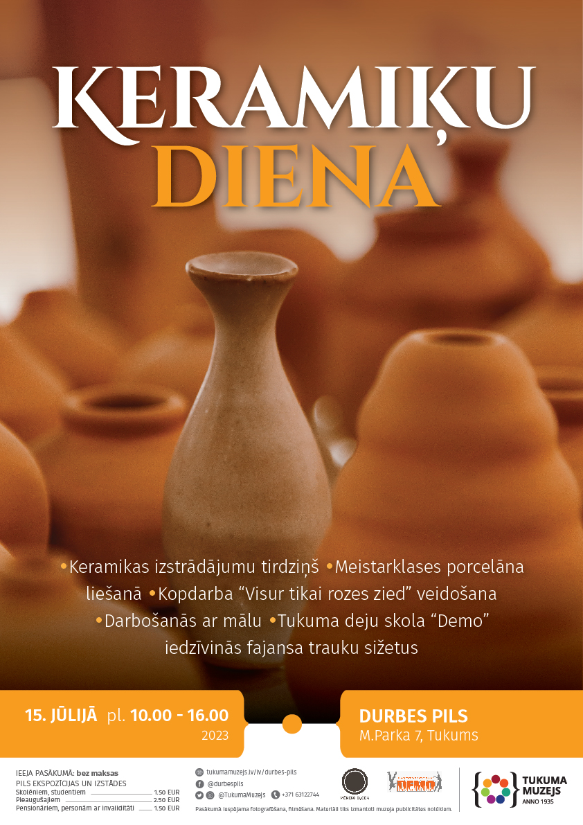 No plkst. 10.00 līdz plkst. 16.00 būs iespēja satikt keramikas meistarus Daci Zvaigzni, Sanitu Mickus, Gunāru Jansonu, Ivaru Grasi, Velgu Melni, Ivetu Jēkabsoni un iegādāties viņu veidotos keramikas darinājumus.